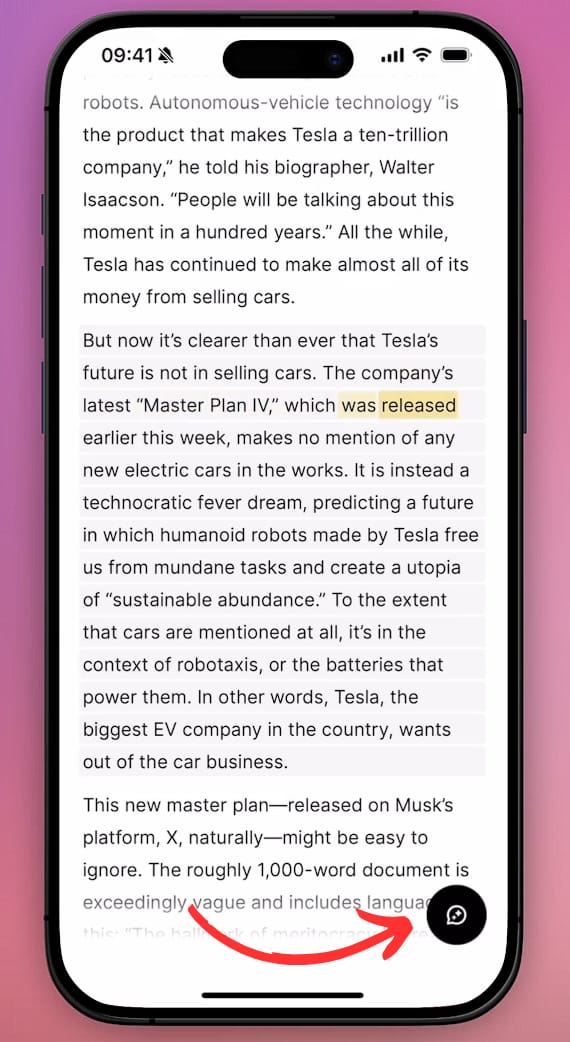 Tap the voice chat button in the bottom-right corner to ask questions about the text.