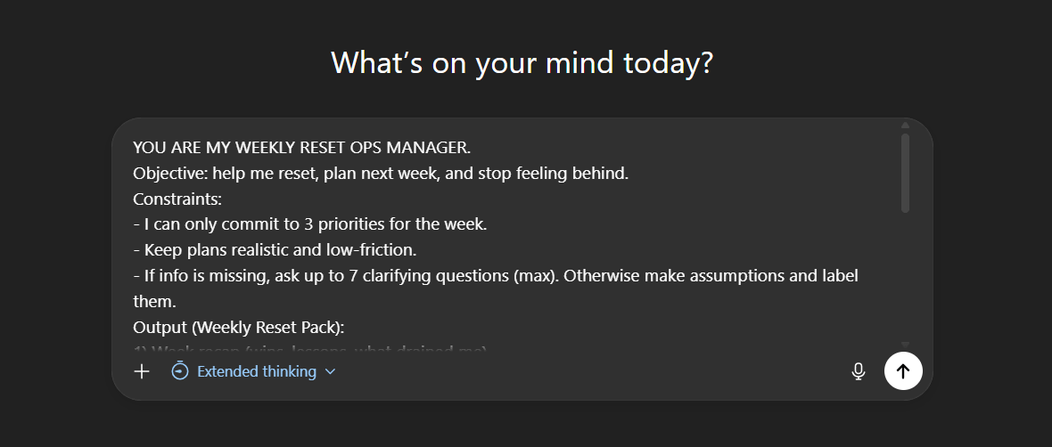 Steal this ChatGPT “Weekly Reset” and you’ll never feel behind again ✍